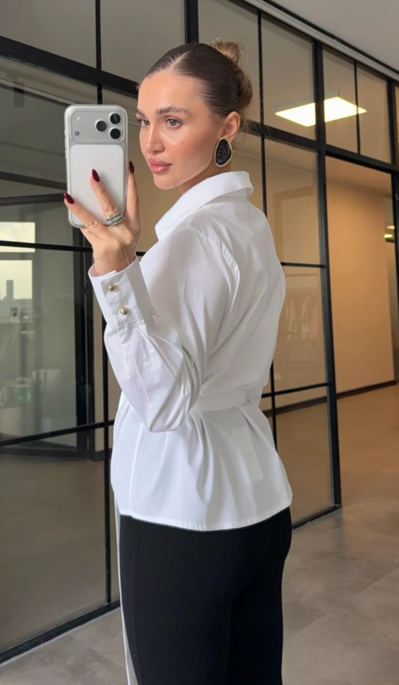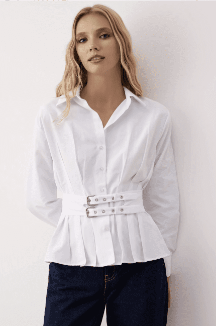 Belted Poplin White Shirt