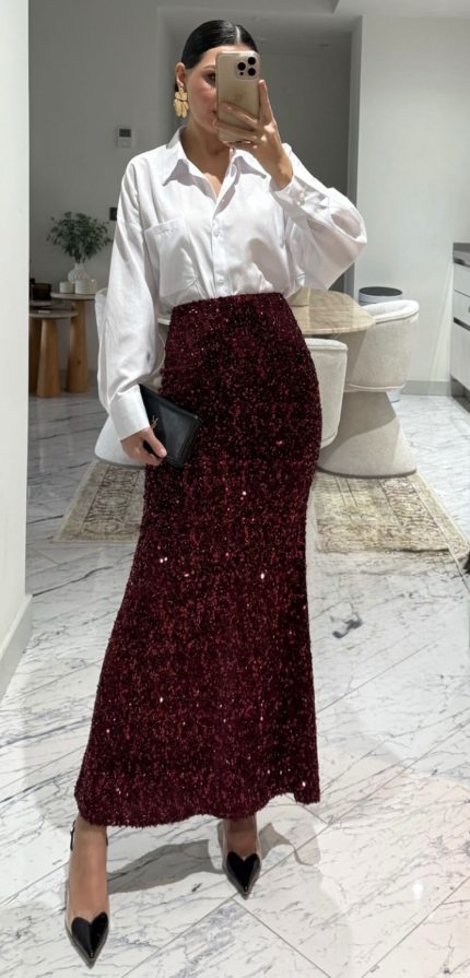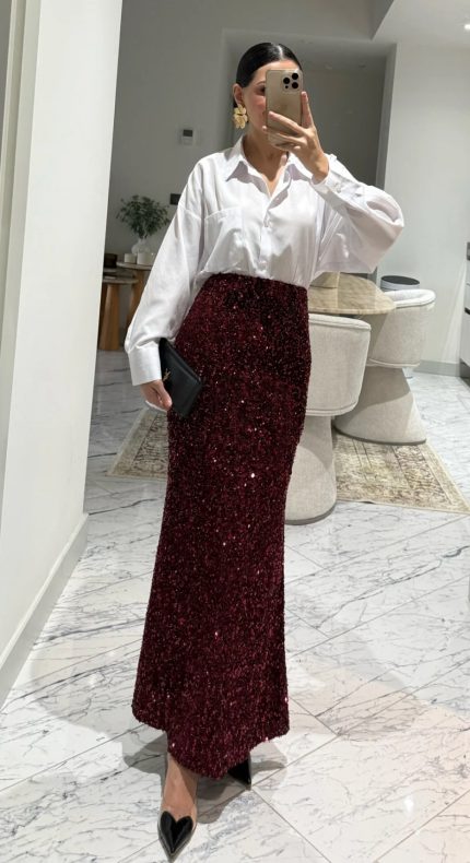 Mermaid Burundy Sequined Skirt