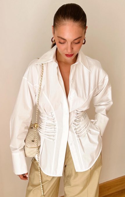Premium White Long Sleeve Shirt with Side Rope Detail