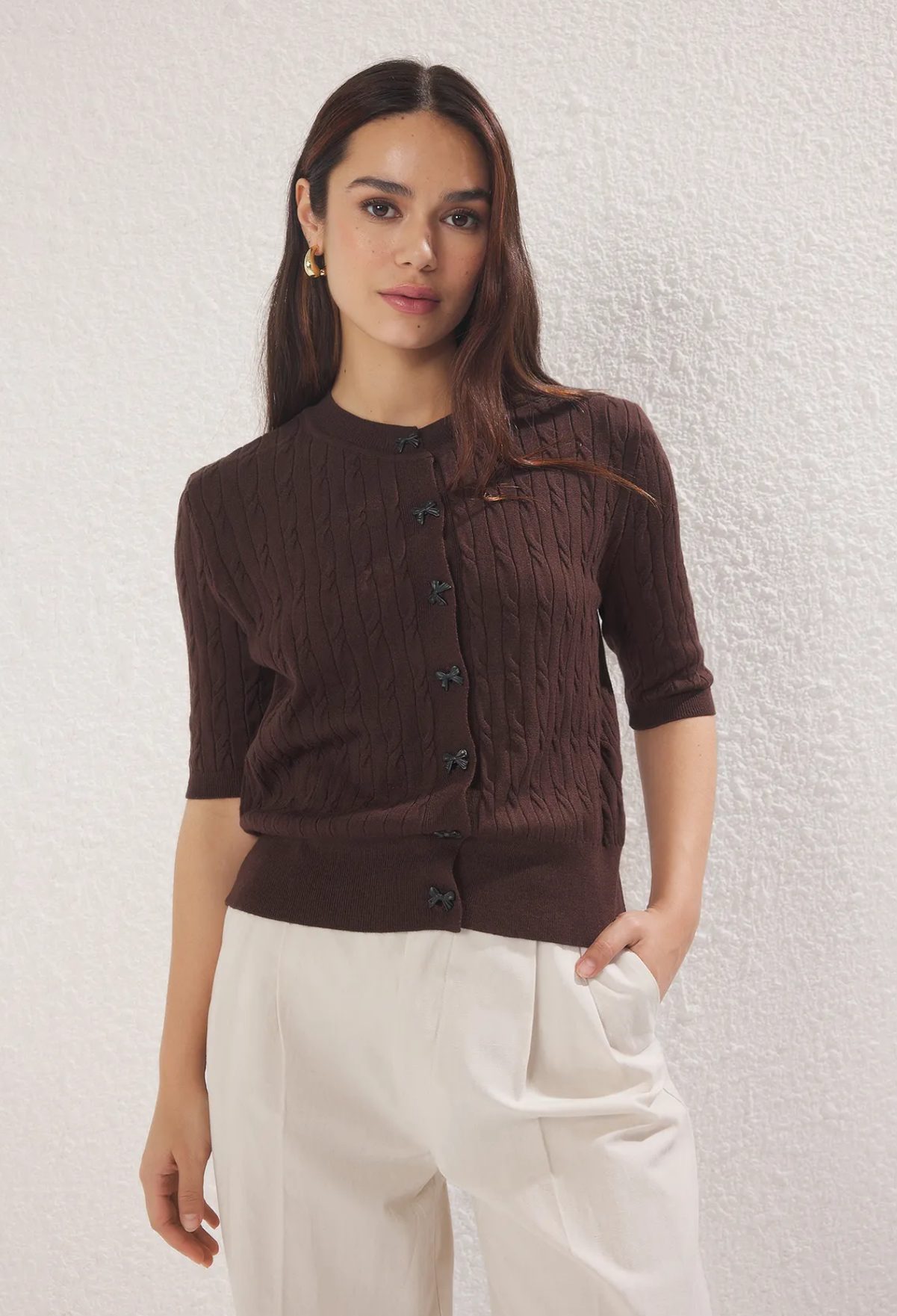 Be the first to review “Brown Ribbon Buttoned Knit Cardigan” Cancel reply