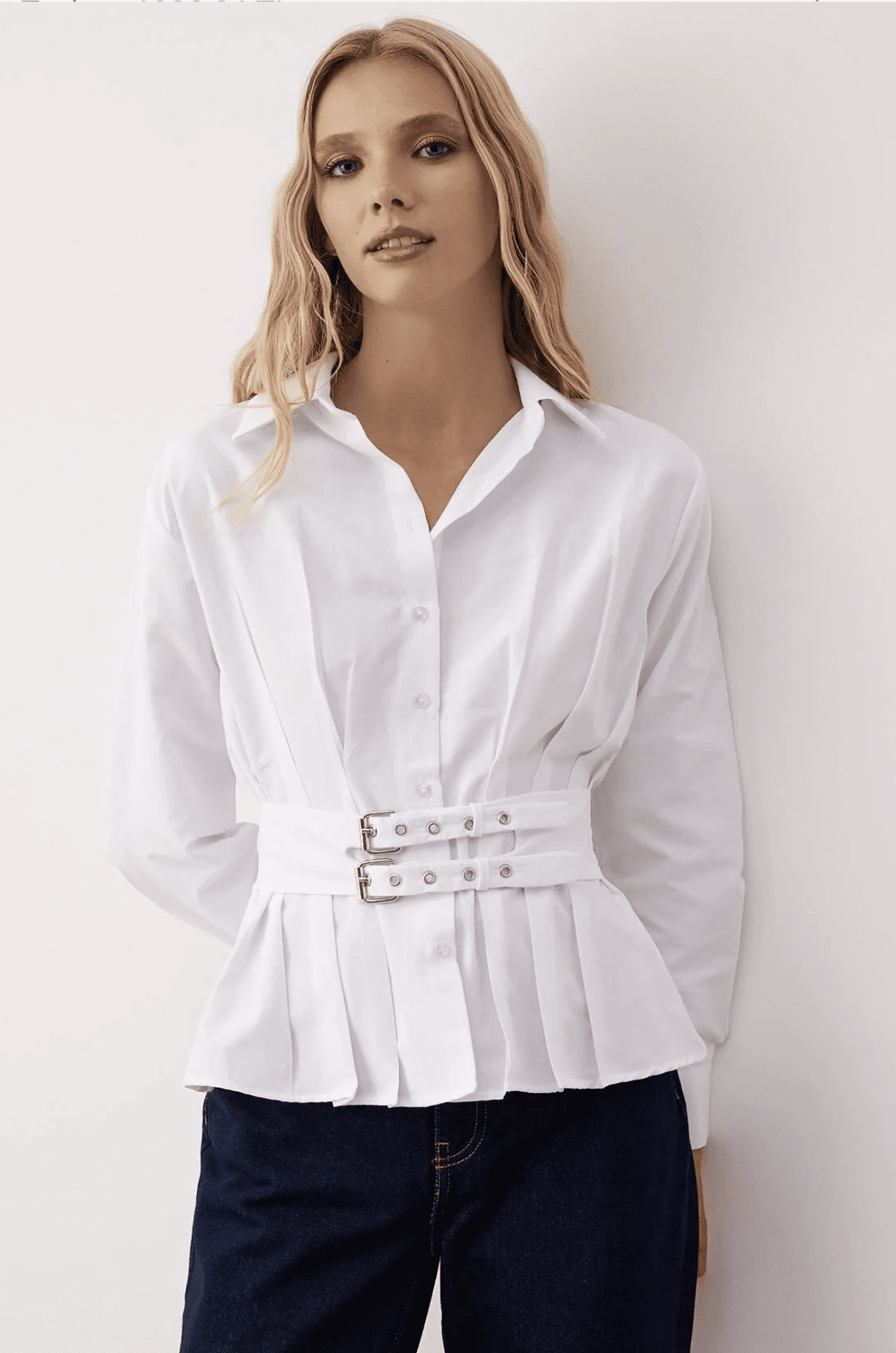 Be the first to review “Double Belt Detail White Shirt” Cancel reply