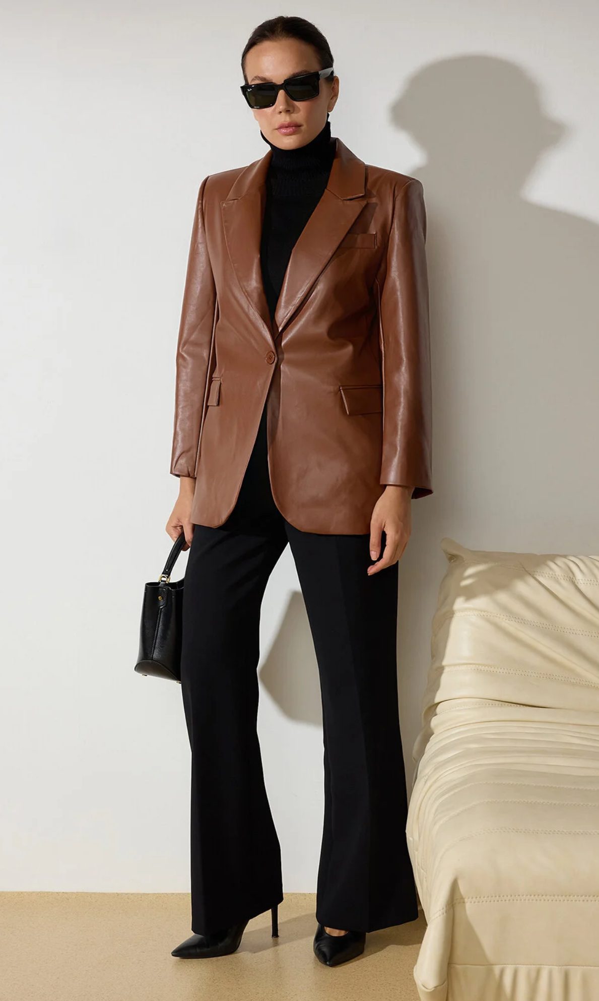 Leather Blazer Jacket-Brown