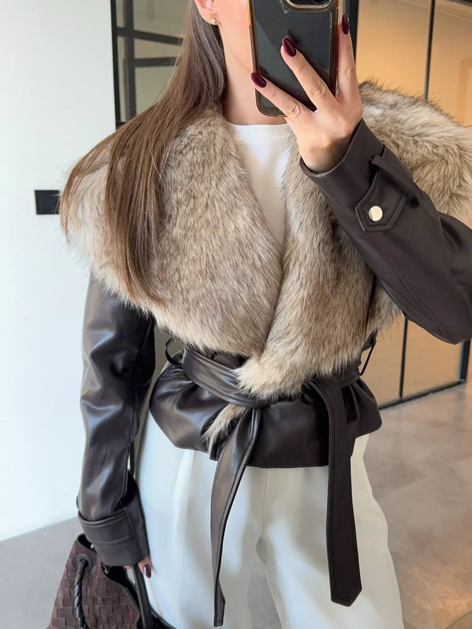 Be the first to review “Premium Leather Fur Collar Brown Jacket” Cancel reply