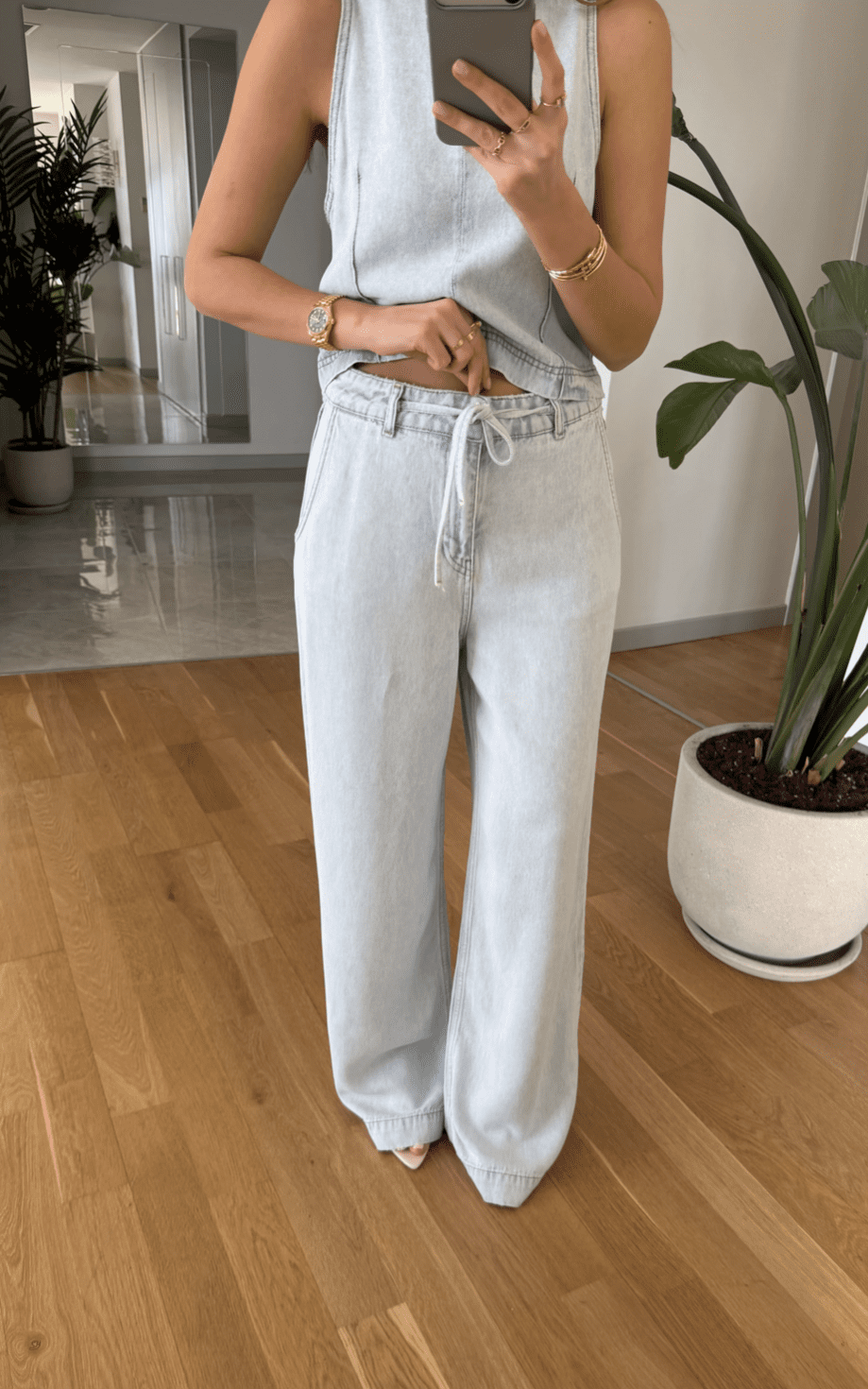 Sleeveless Tencel Set with Zipper Back
