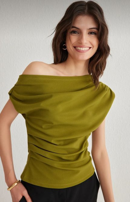 Olive Green Asymmetrical Neck Blouse